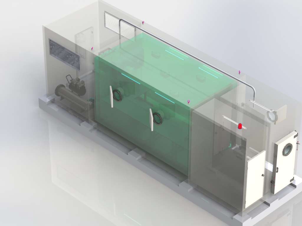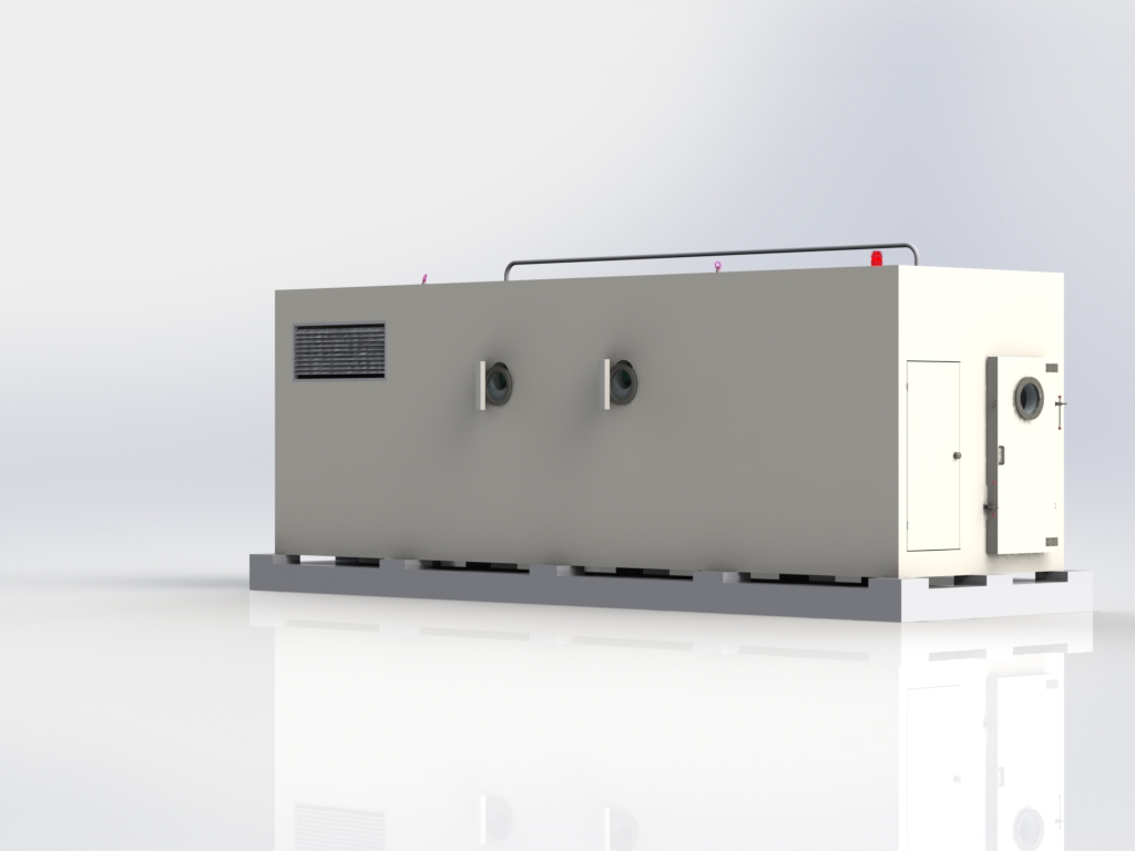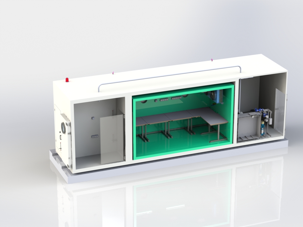 高原模擬艙為有人進入型。艙內壓力、溫度、濕度、紫外線強度均為自動控制等。本模擬艙可以用于高原環境下人員訓練、野生動物保育和其它科學實驗。設備為一體化設計。僅需提供氧氣、自來水及供電即可維持使用。艙體的大小及功能可以根據需求進行設計。